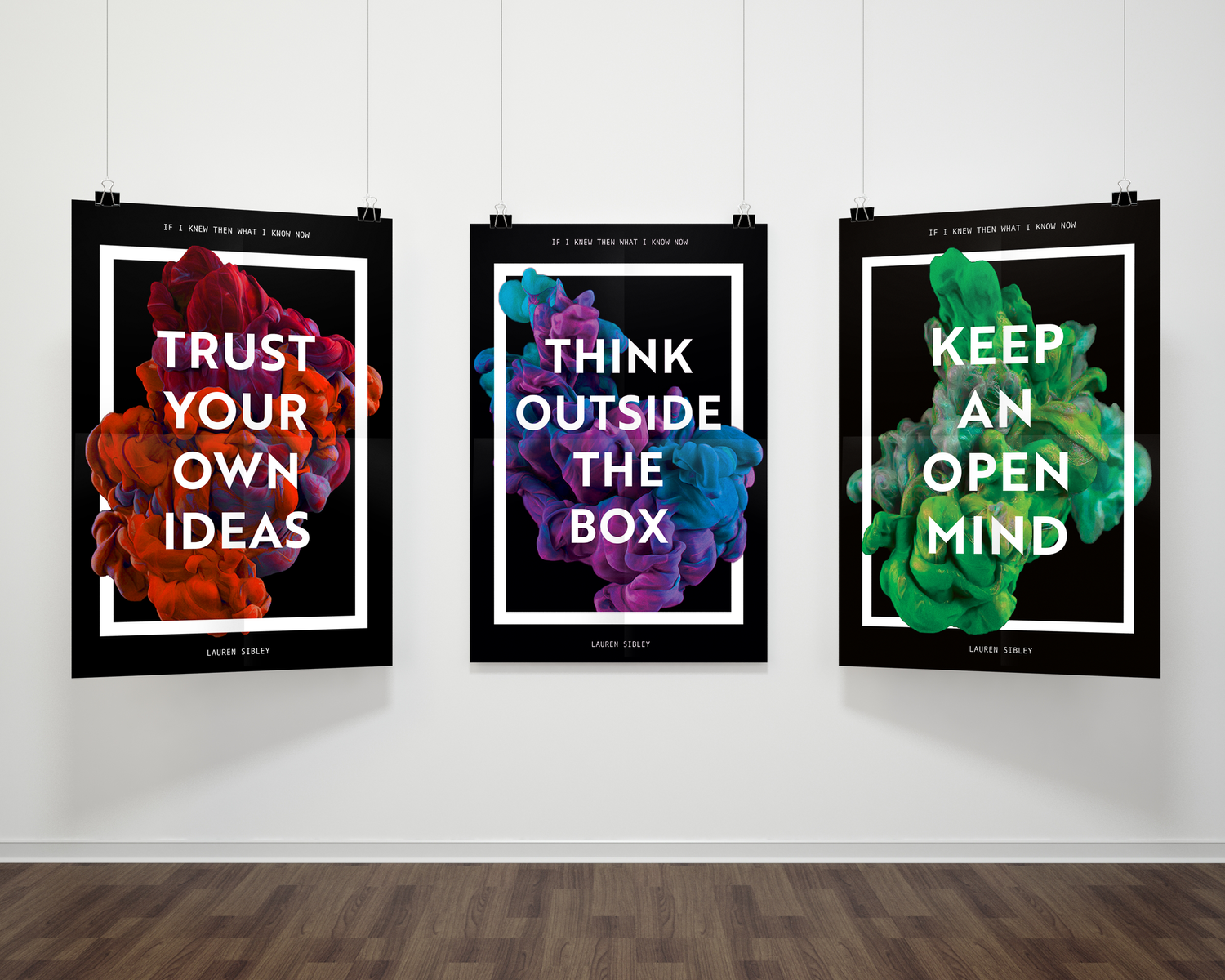 I was told to include the phrase ‘If I Knew Then What I Know Now’ as a starting point and I created three poster designs.